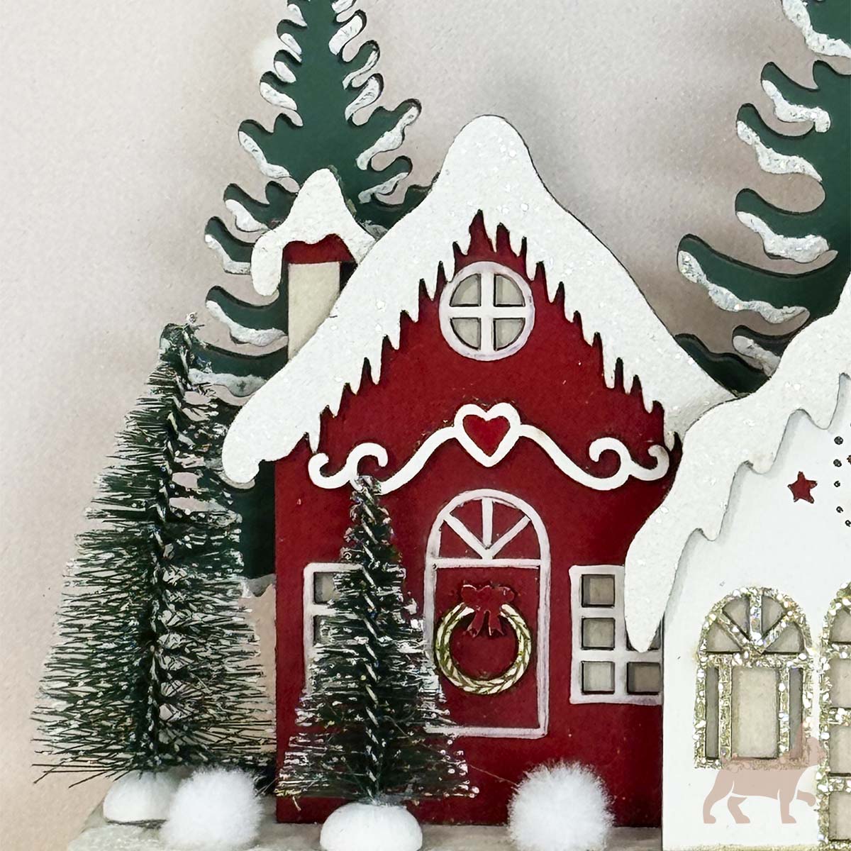 🏠 Conjunto de 3 casas en tonos rojo, blanco y verde.